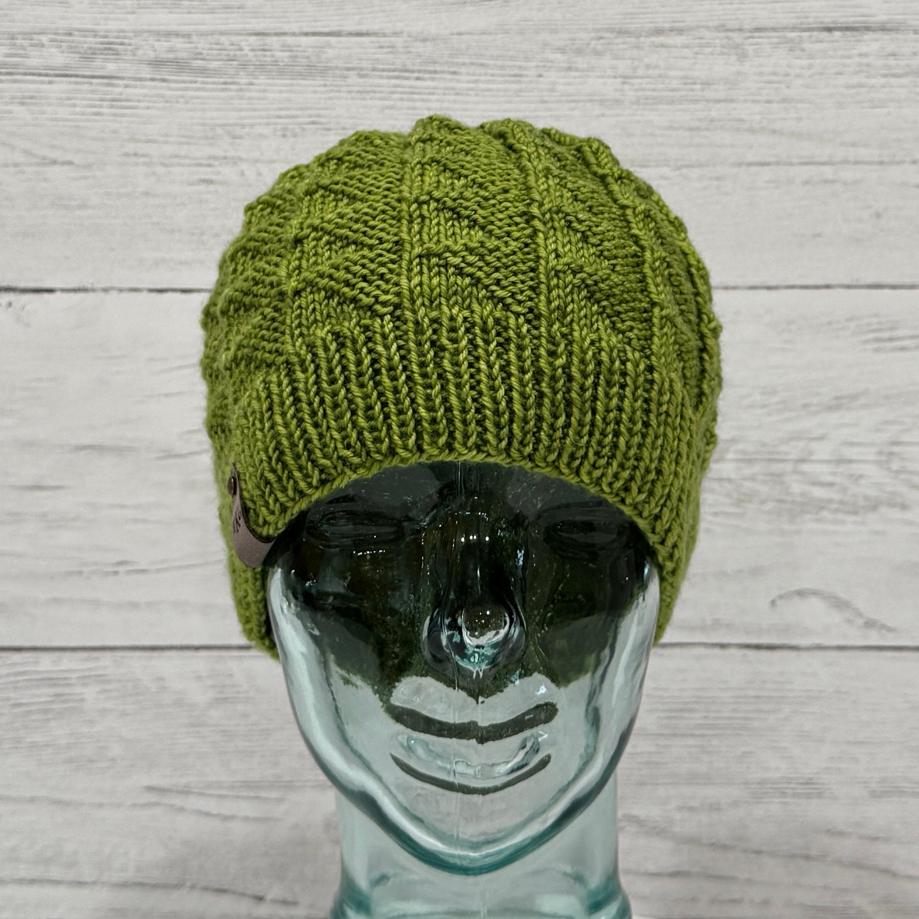 Off the Rails Beanie is a modern beanie that turns simple knits and purls into a bold texture. Half-and-half triangular shapes stack and fold into a striking geometric pattern that feels structured and cozy, giving the fabric a playful “off-track” illusion. Designed with simple techniques that create an intricate, modern look. This beanie is engaging to knit and visually impactful without being complicated. The stitch pattern creates depth and movement, making it perfect for showcasing solid or lightly tonal yarns. This beanie is one size and can fit most adults and teens.
